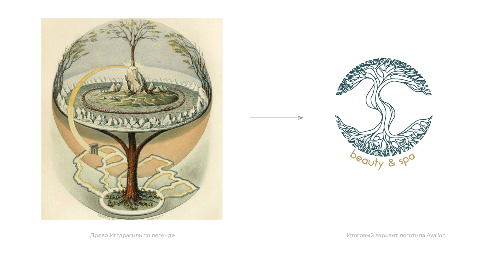 Древо Иггдрасиль является самым известным Мировым древом – это гигантский ясень, являющийся осью, структурной основой мира, древом жизни и судьбы. Его исполнение не знает границ, так как для каждого оно представляется по-своему. Основной задачей при разработке графического элемента для спа салона, внедрить глубокий смысл, духовность и философию жизни. Древо жизни из кельтской мифологии наиболее ярко и точно передает всю суть бизнеса, ее идею и настроение.